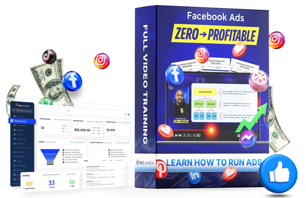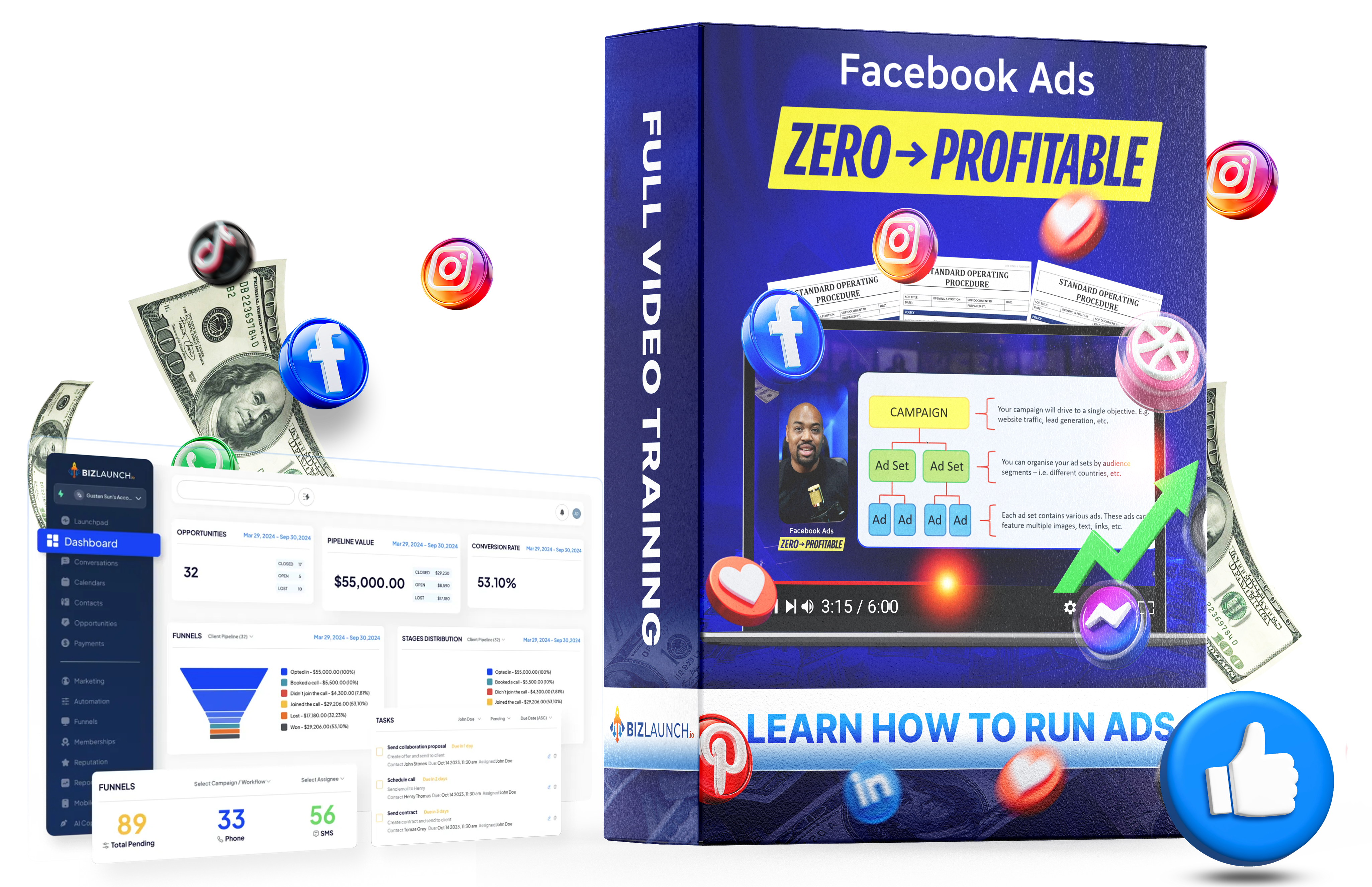 A: No. Zero → Profitable is training only. You’ll learn how ads work and how to run them effectively, but this does not include funnels, templates, CRM software, or done-for-you assets.
