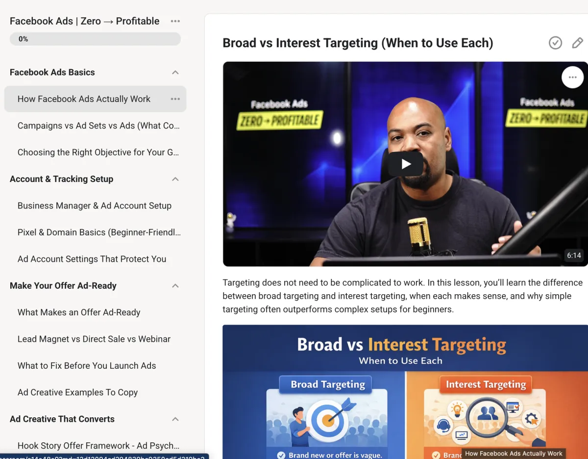 Zero → Profitable was created to give you the clarity most people never get. Instead of tactics and hype, this training teaches you how to think about ads, how to launch them safely, and how to grow them without panic or overwhelm.